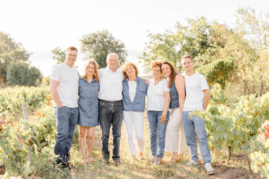Se retrouver, transmettre, célébrer : c'est dans la lumière douce de fin de journée de juillet qu'Odile & Gilles ont réuni leur enfants et petits enfants pour cette séance photos.