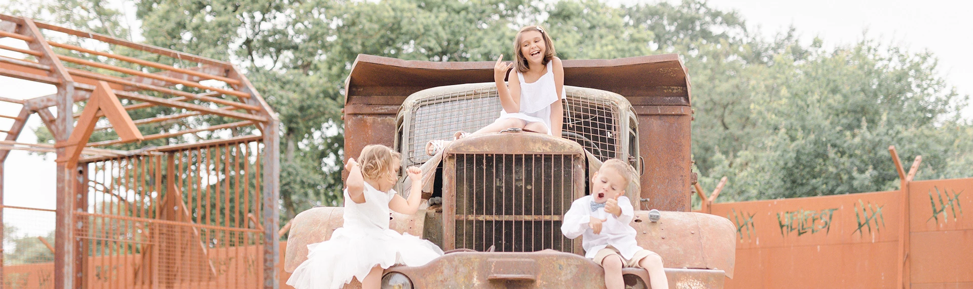Nous avons terminé au coucher du soleil sur le site du Hellfest, dans un univers bien différent. Du joli métal rouillé, des installations grandioses, bref, un vrai terrain de jeu pour les enfants !