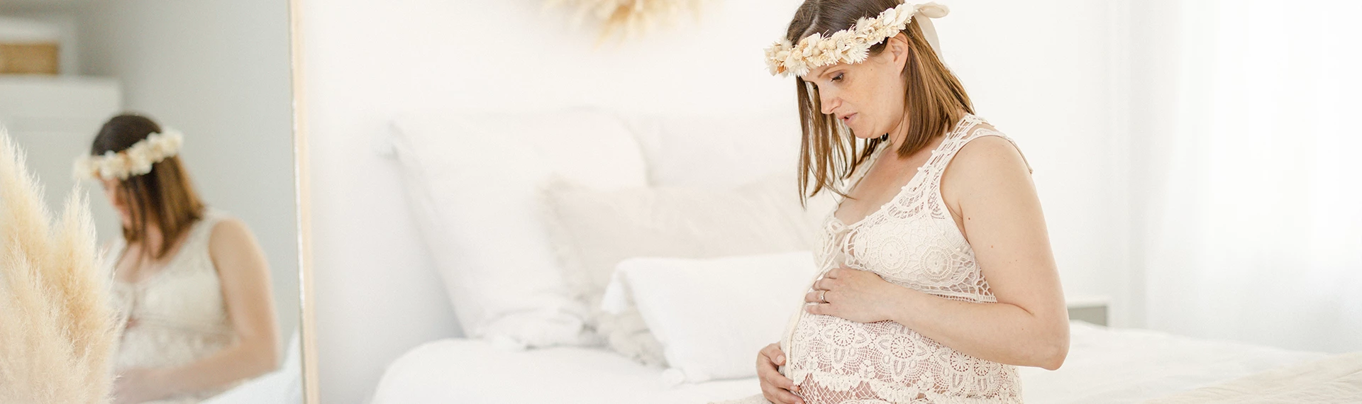 Pour cette séance, c'est Laura qui est mise en lumière. Elle va mettre au monde d'ici quelques semaines sa troisième petite merveille. C'est au studio que nous avons capturé ces souvenirs, dans une atmosphère douce et intemporelle.