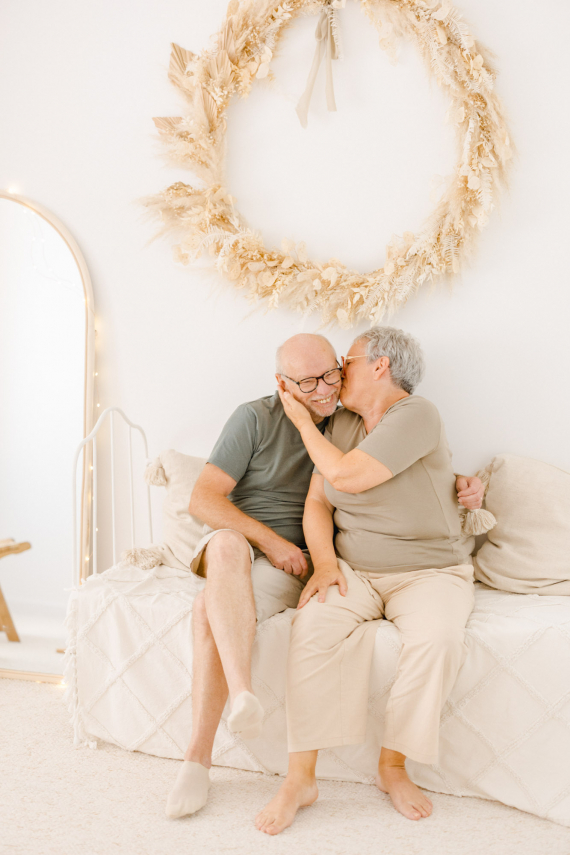 La séance avec Patricia & Hubert a été un vrai moment de vie. Dans mon studio à La Boissière-de-Montaigu, baigné de lumière naturelle, j’ai voulu simplement les laisser vivre : les rires des enfants, les gestes tendres, les regards complices.